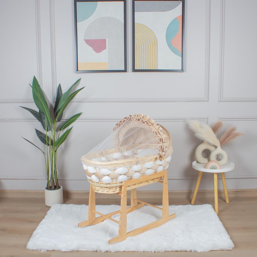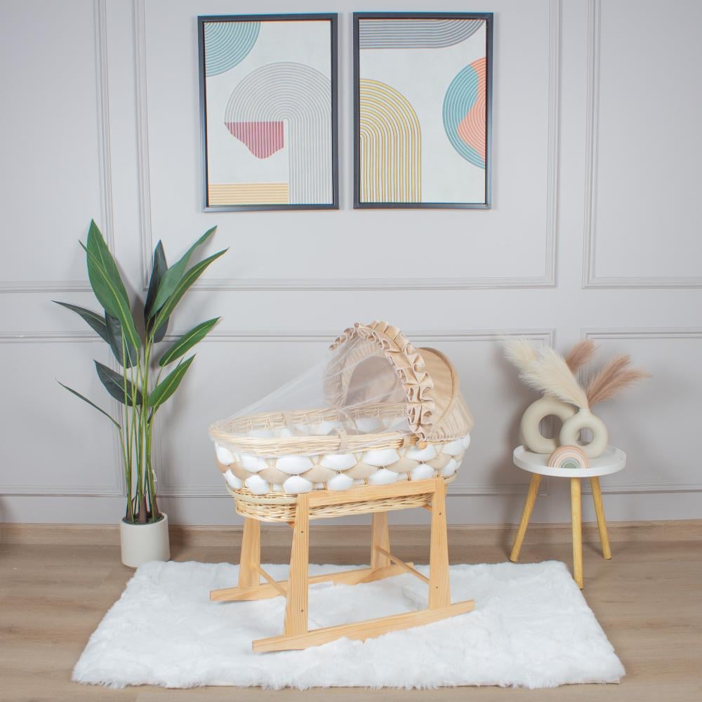 سلة موسى خيزران خشبي بتلبيسة ضفيرة بيج