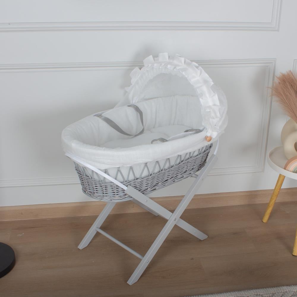 سلة موسى خيزران رمادي  بتلبيسة قماش اللنن اوف وايت