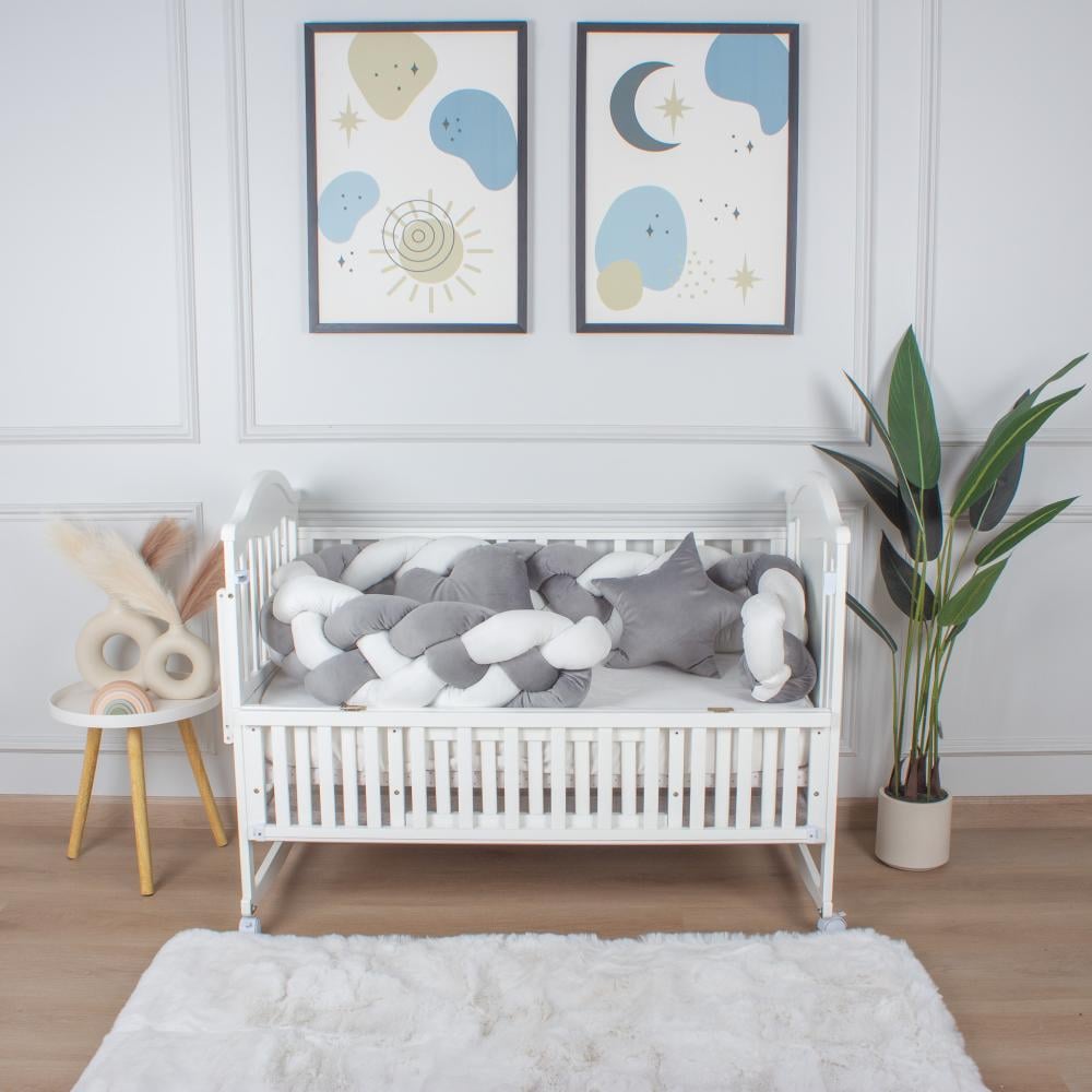 4. ضفيرة رباعية لسرير الطفل رمادي
