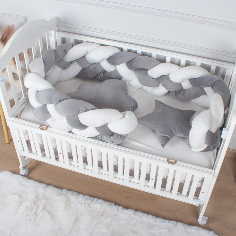 ضفيرة رباعية لسرير الطفل رمادي