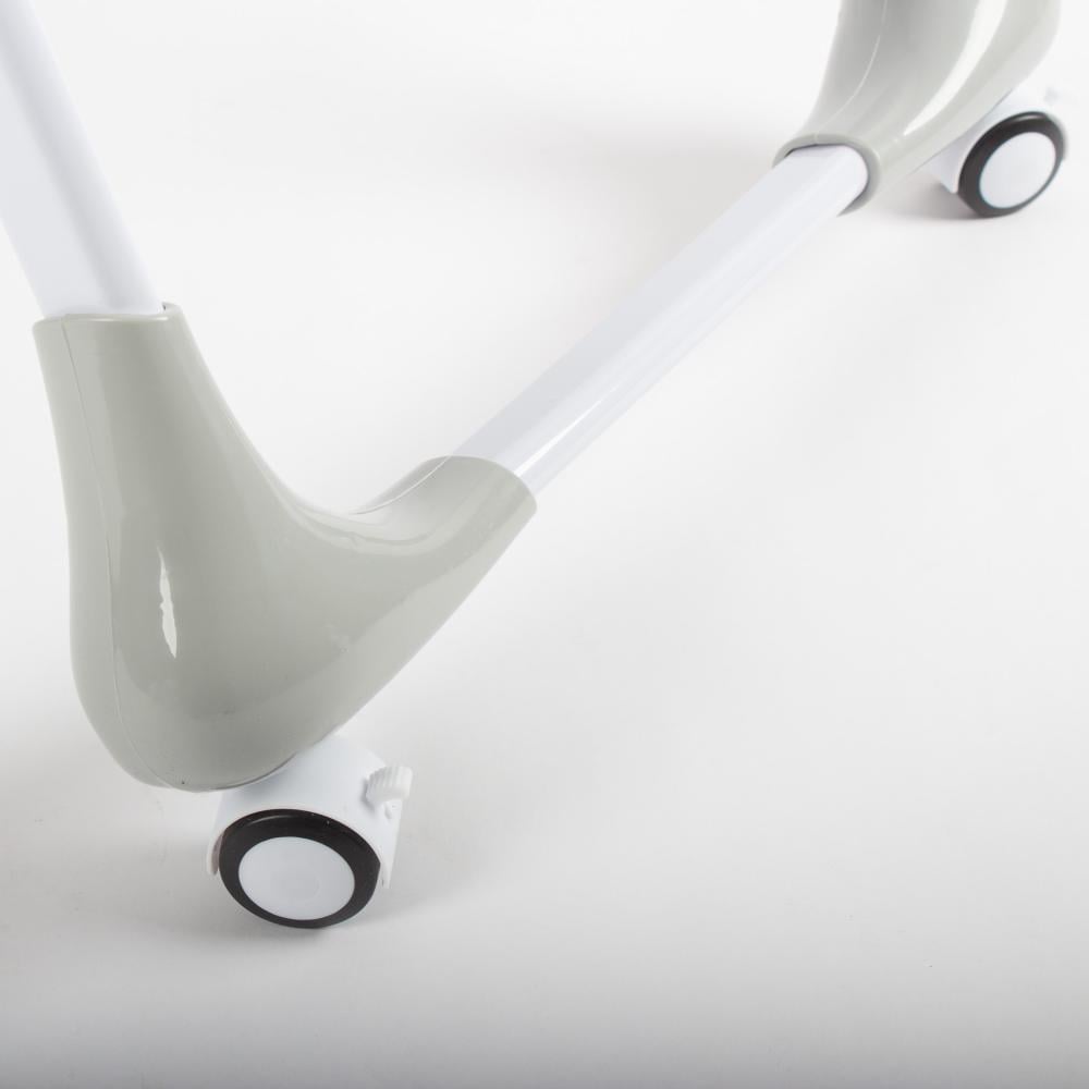 - استخدام الدرج: لتوصيل الدرج أو إزالته، قم بتحريكه على الفتحات المخصصة في الجزء الأمامي من الكرسي المرتفع حتى يستقر في مكانه. للإزالة، اضغط على أزرار التحرير الموجودة على كلا الجانبين وارفع الدرج للخارج. بعد الوجبات، نظف الصينية بقطعة قماش مبللة أو اغسلها بالماء الدافئ والصابون.