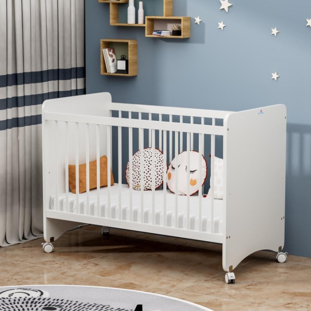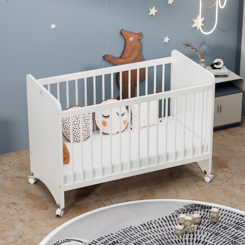 سرير الأطفال سرير خشبي ابيض مصنوع من خشب الصنوبر المتين، هذا السرير يجمع بين التصميم العصري والوظائف العملية، يناسب الأطفال من الولادة وحتى اربع سنوات ، مما يجعله استثماراً ذكياً ويتميز بباب ثابت يضمن سلامة الطفل، بالإضافة إلى إمكانية التحكم في مستوى المرتبة ، مما يوفر راحة إضافية مع نمو الطفل.