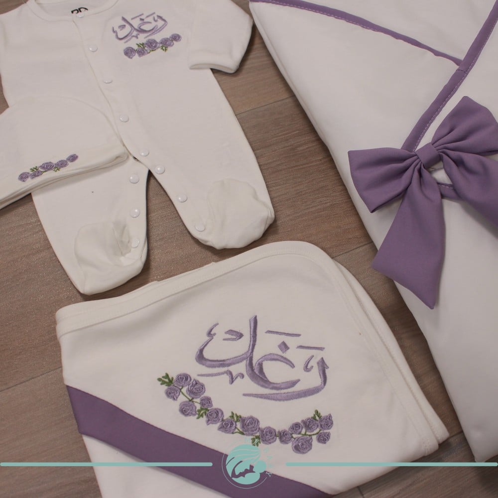يتكوّن الطقم من اربع قطعمدسافارولكوفلهقبّوعالرجاء كتابة الاسم المراد تطريزة في الملاحظات و التواصل واتساب للتنسيق بعد اتمام الطلبالمشاركة عبر واتساب (...