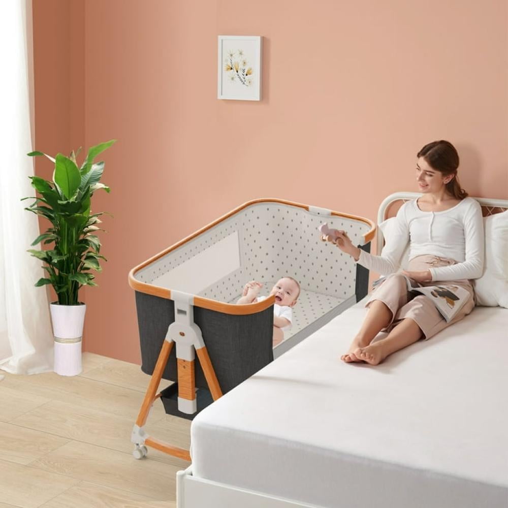 مصمم خصيصاً ليجعل نومك اكثر راحة ... فلن تحتاجي الى نهوض عن السرير بعد الآن .. لأن طفلك سوف يكون بجانبك في المهد الخاص به